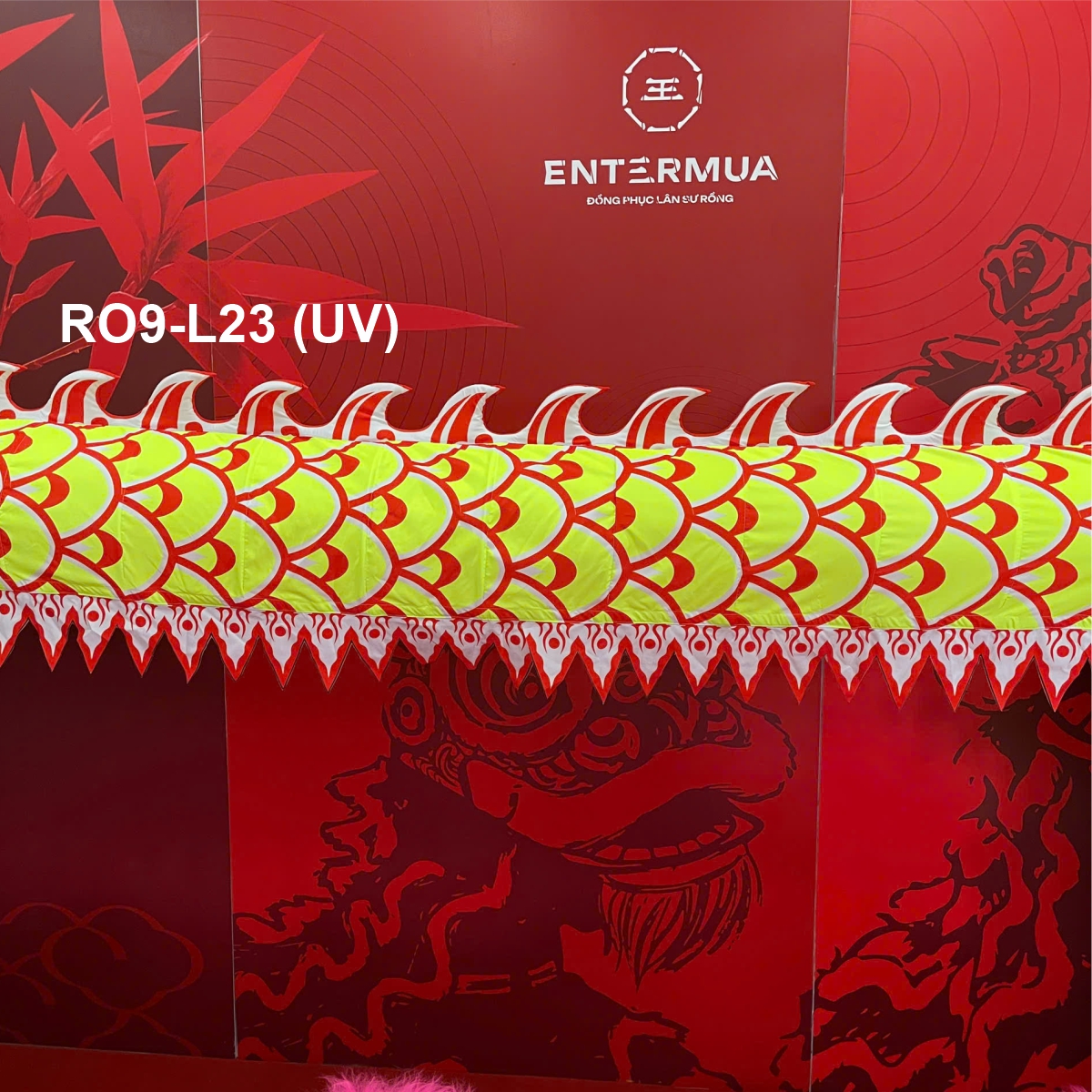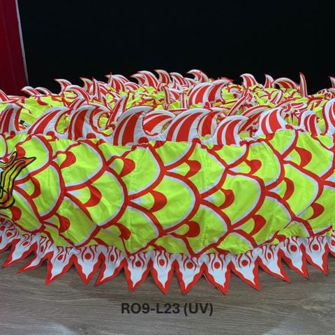 Mình rồng được may từ vải gió, lưới cao cấp, mềm mại, thoáng khí nhưng vẫn bền chắc. Vải ít thấm nước, không xù lông, không dễ rách – phù hợp biểu diễn trong nhà và ngoài trời, cả trong điều kiện thời tiết nóng ẩm.