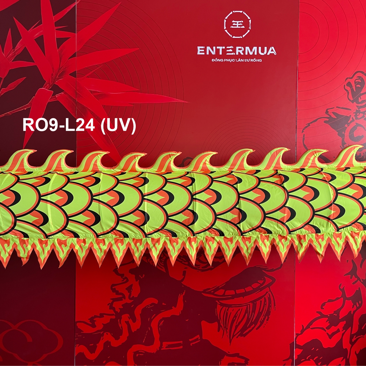 Mình rồng được may từ vải gió, lưới cao cấp, mềm mại, thoáng khí nhưng vẫn bền chắc. Vải ít thấm nước, không xù lông, không dễ rách – phù hợp biểu diễn trong nhà và ngoài trời, cả trong điều kiện thời tiết nóng ẩm.
