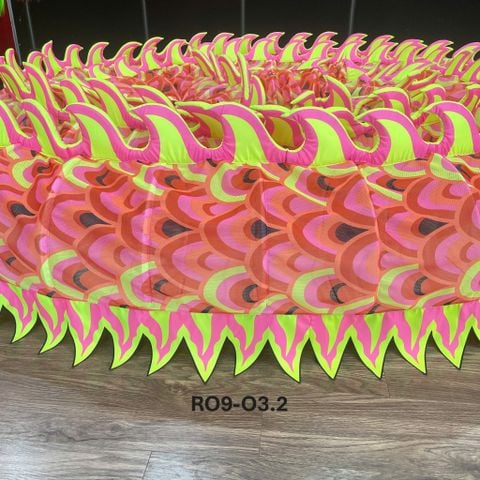 Mình rồng được may từ vải gió, lưới cao cấp, mềm mại, thoáng khí nhưng vẫn bền chắc. Vải ít thấm nước, không xù lông, không dễ rách – phù hợp biểu diễn trong nhà và ngoài trời, cả trong điều kiện thời tiết nóng ẩm.